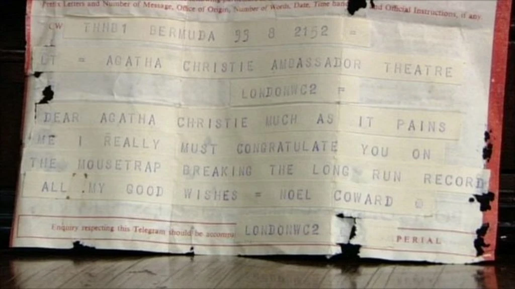 “Dear Agatha Christie, much as it pains me I really must congratulate you on The Mousetrap breaking the long run record. All my good wishes, Noel Coward.”