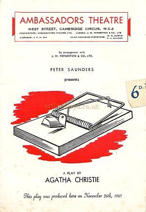The Mousetrap is a murder mystery play by Agatha Christie. The Mousetrap opened in the West End of London in 1952, and has been running continuously since then. It has the longest initial run of any play in history, with over 24,500 performances so far. It is the longest running show (of any type) of the modern era. The play is also known for its twist ending, which the audience are traditionally asked not to reveal after leaving the theatre.